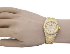 Audemars Piguet Royal Oak 18K Yellow Gold Midsize 37MM Diamond Watch 25.75 Ct