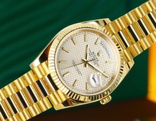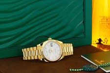 Rolex Day-Date 40mm President Silver Motif Dial Fluted Bezel Yellow Gold 228238
