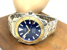Omega Seamaster Mens Watch 2455.80 Swiss Automatic Blue Dial 18k Gold Steel 41mm