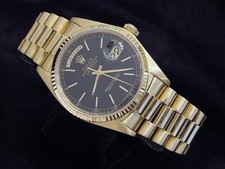 Rolex Day-Date President 18038 Men 18k Yellow Gold Watch Black Dial Fluted Bezel