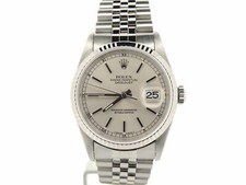 Rolex Datejust Mens Stainless Steel Watch 18K White Gold Bezel Silver Dial 16234