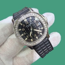 BOX PAPERS Patek Philippe Aquanaut 5066A Black Dial Custom Natural Diamond Bezel